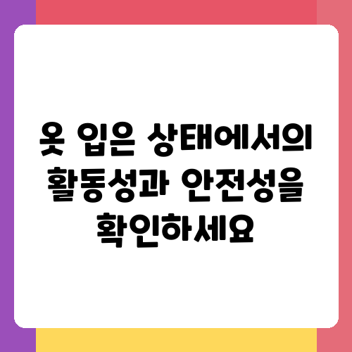 옷 입은 상태에서의 활동성과 안전성을 확인하세요